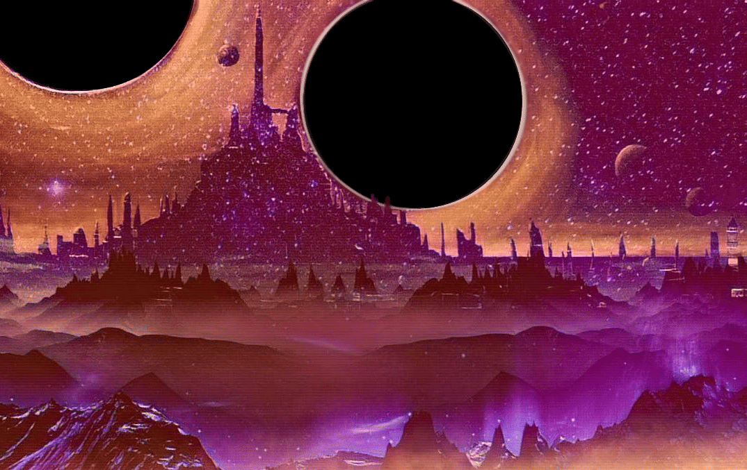 She was, as before, caged into the streets by tall, inscrutable buildings that rose like monuments to some forgotten thing into the shimmering, polychromatic heavens. Above those lofty black-stone heights, she saw moons flit by, some fast, some slow, but each of them coiling around themselves like spherical ouroboroi. The sight made her shudder with revulsion and more than a little desire. “Is it not the virtue of selflessness to obliterate the self?” she wondered aloud, watching the writhing worlds boil and squirm in their self-consumption.
