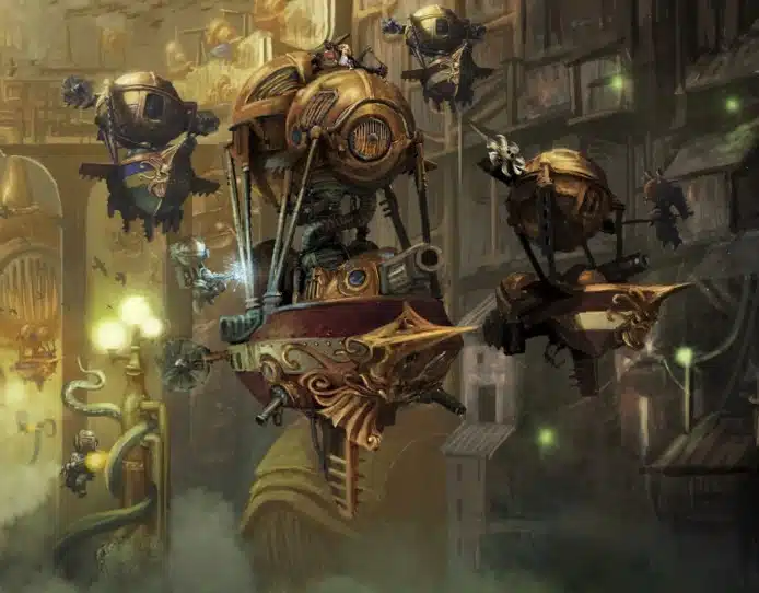 Close to the city of Old Kleah, the mercenary company of the Kharadron Captain Brarkeja Hammersworn and Grumnock Rawscorn of the Greyfyrd lodge have been allowed to built barracks and an attached skyport as a reward for their service to the Templar cause during the Hellscorn War.