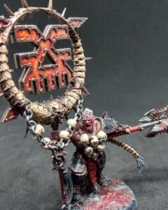 His vision is to bring the wrath of Khorne to every corner of the mortal realms. To accomplish this, he seeks to summon up the incarnations of Khorne to consume everything the eye can see. While he follows the path of Aichmos, he owes him no allegiance aside from acknowledging that Khorne has given him recognition. As such, there is no loyalty and he often disregards the calls of Aichmos, knowing full well that the mighty lord would not dare to strike against the high priest of slaughter.