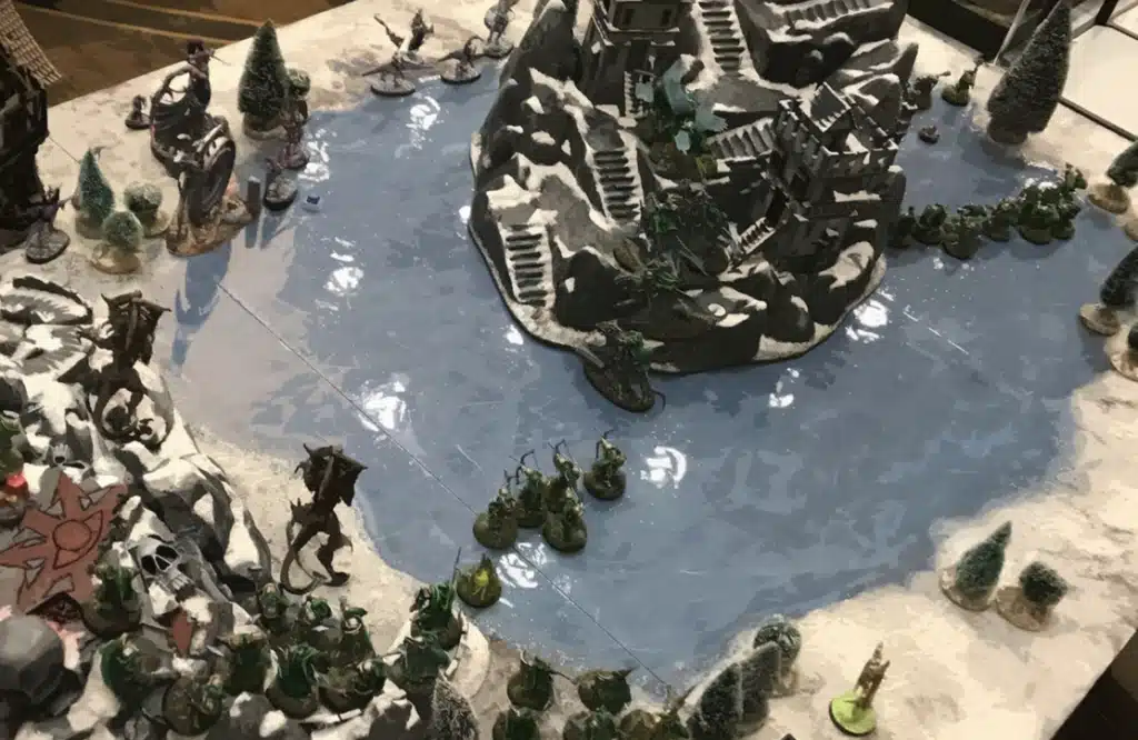 On our second day of observing the area, two groups encountered each other upon the ice. The Orruk group hurled abuse at the nautical-appearing Ogors until a fight broke loose. Once combat had begun, multiple of the Automaton (or as I have dubbed them, the Centratrons) also joined the fray – seemingly fighting on both sides of the battle. They did not seek to kill their opponents, as you would expect of our Daemon Engines, and instead disarmed their enemies and moved onto the next “honourable” target. When the Ogors eventually put down the final Orruk, both groups were forcibly escorted out of the area (narrowly avoiding the camp from which we were observing).