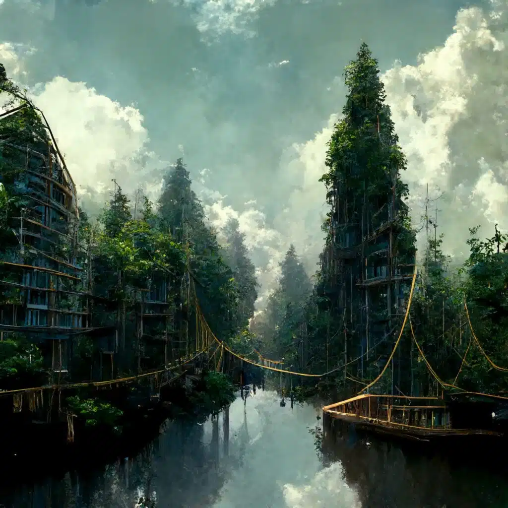Deep from the inside of the jungle rise two tall hand-shaped trees, like those of a verdant giant, hewn apparently by the hand of some godly power. Walking closer to them, your scouts have found the remnants of a complex irrigation system for fields and canals, and the overgrown ruins of beautifully crafted docks and locks, and incredibly well paved highways. The ruins of houses, temples, barracks and walls all line beautifully paved streets.